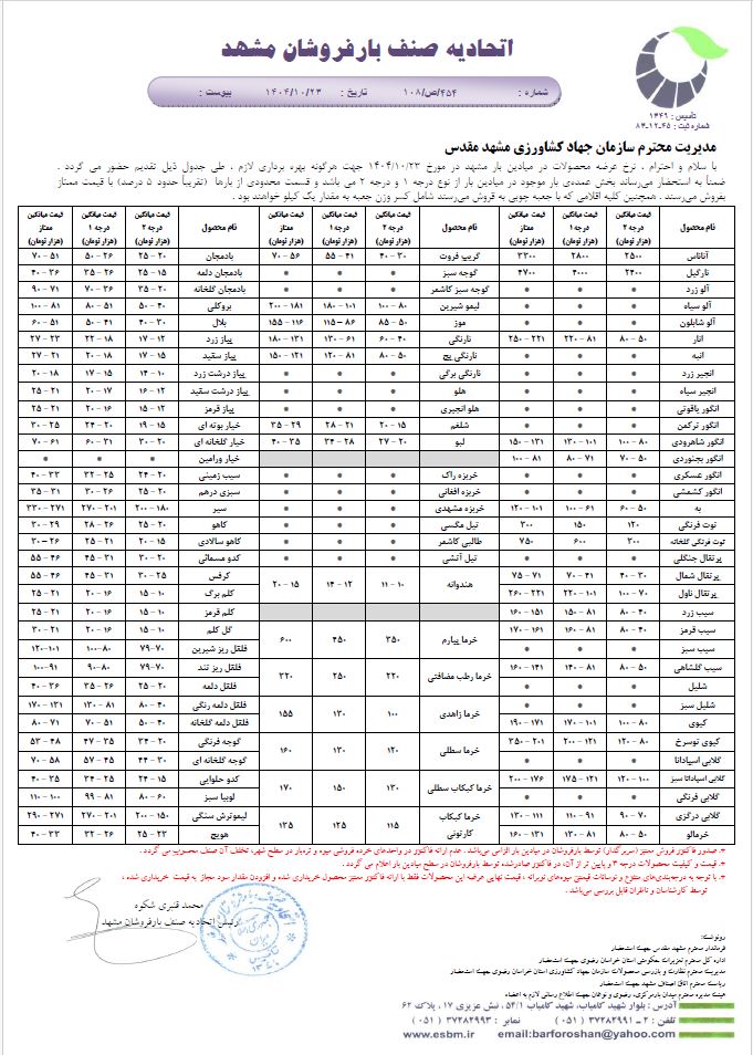 نرخنامه اعلامی 1403/07/01 [ يكشنبه، 1 مهر ماه، 1403 ] 388 مشاهده