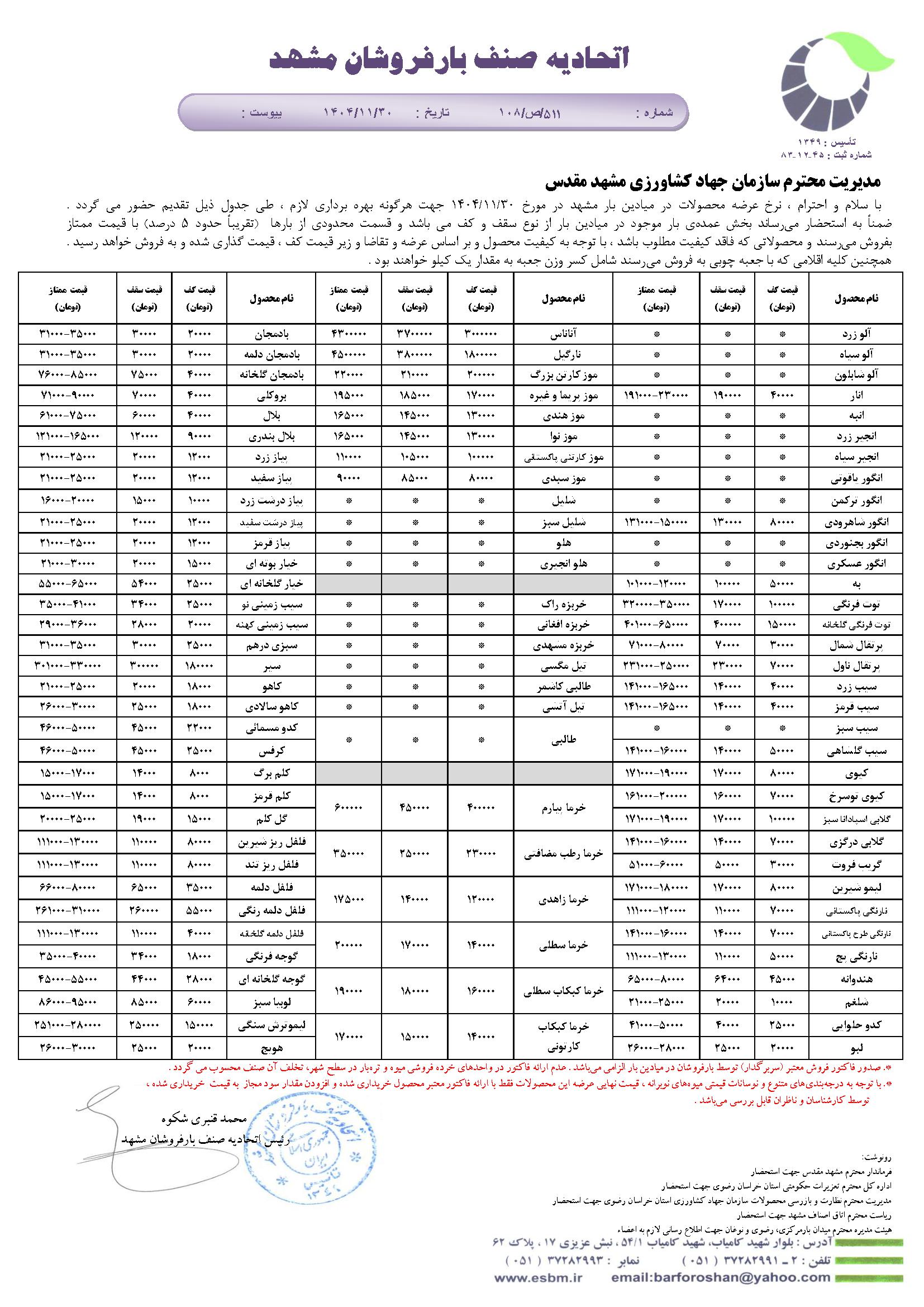 نرخنامه اعلامی 1403/06/20 [ سه شنبه، 20 شهريور ماه، 1403 ] 405 مشاهده