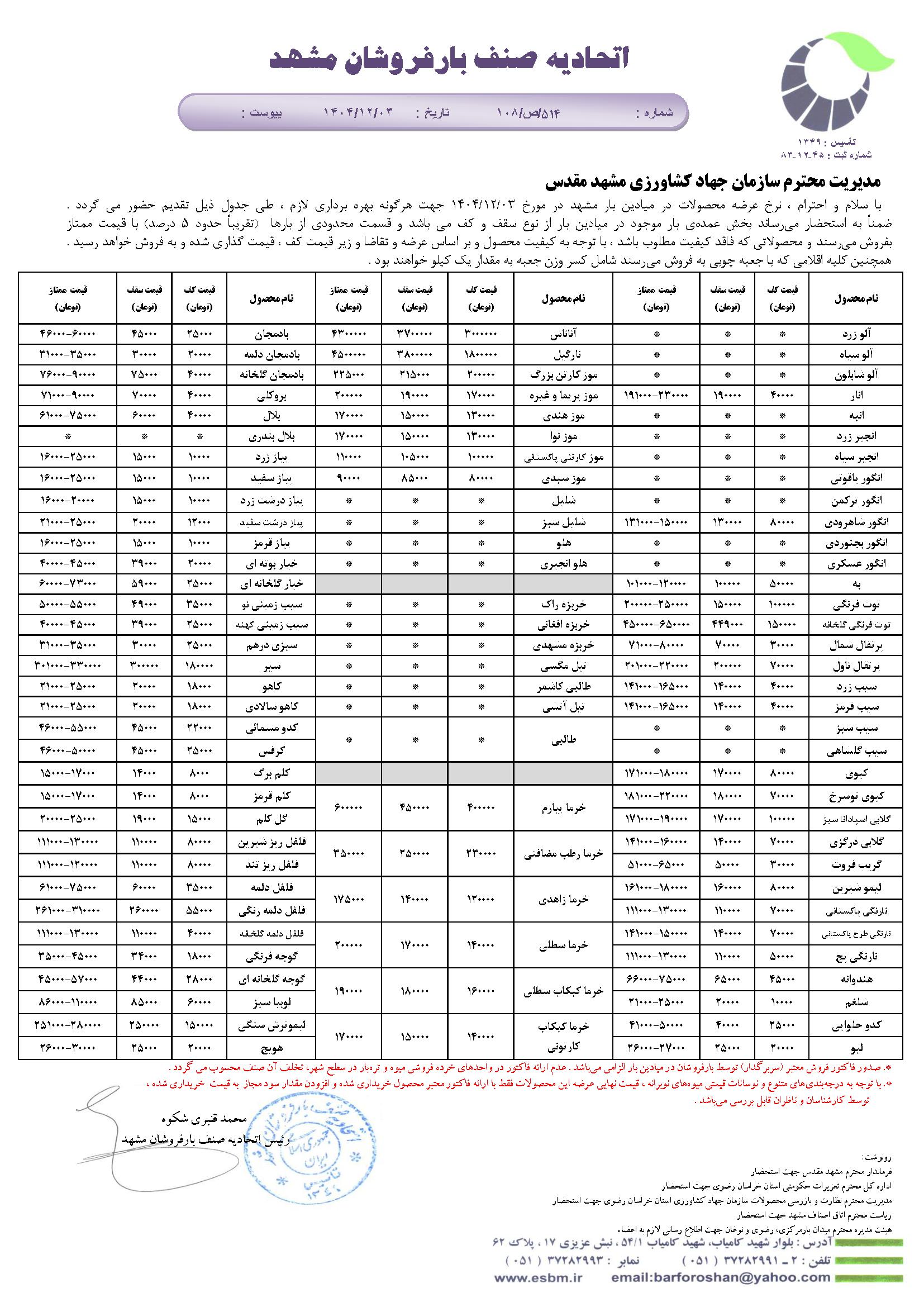 نرخنامه اعلامی 1404/05/11 [ شنبه، 11 مرداد ماه، 1404 ] 346 مشاهده