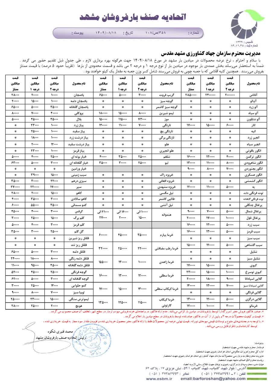 نرخنامه اعلامی 1404/07/21 [ دوشنبه، 21 مهر ماه، 1404 ] 62 مشاهده